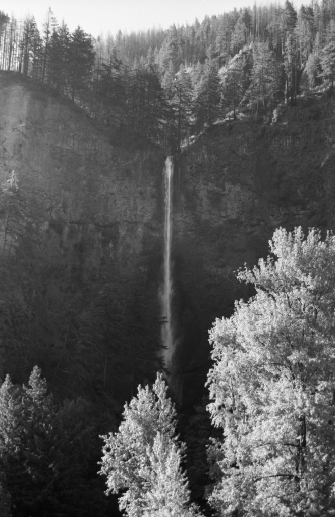 A photo can’t always do justice to the thing itself, but still I try to use other means. There are certain subjects that really do lend themselves solely to film photography, and sometimes you have to go with black and white or color. For this waterfall, this particular shot sticks with me because it’s the only one I took that captured the whole thing. Every other shot was closer up, capturing a spray of water, a fern, a pool at the base of the falls – and they’re fine. But none make me feel so small and insignificant as this one. There’s power in perspective, and that’s important.